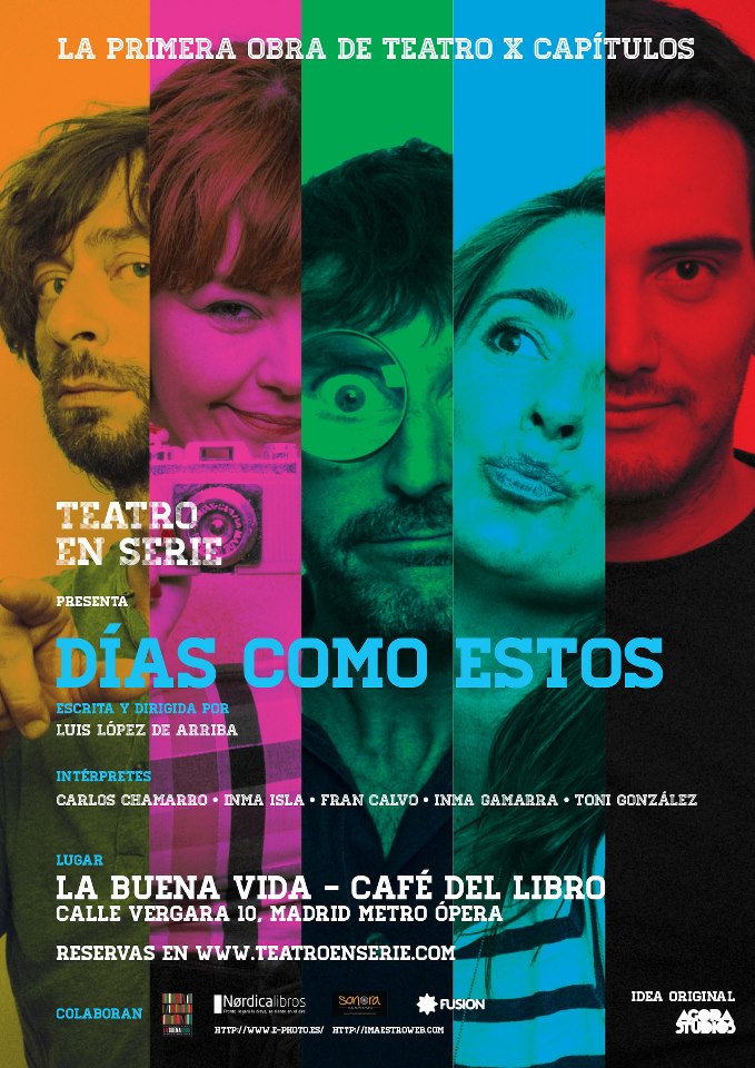 Teatro en serie (formato escénico que representa obras por capítulos) presenta su pieza Días como estos en tres episodios (de 40 minutos) que se representan en La Buena Vida – Café del Libro (Madrid) hasta el 27 de abril. La entrada cuesta 10 euros (con consumición).