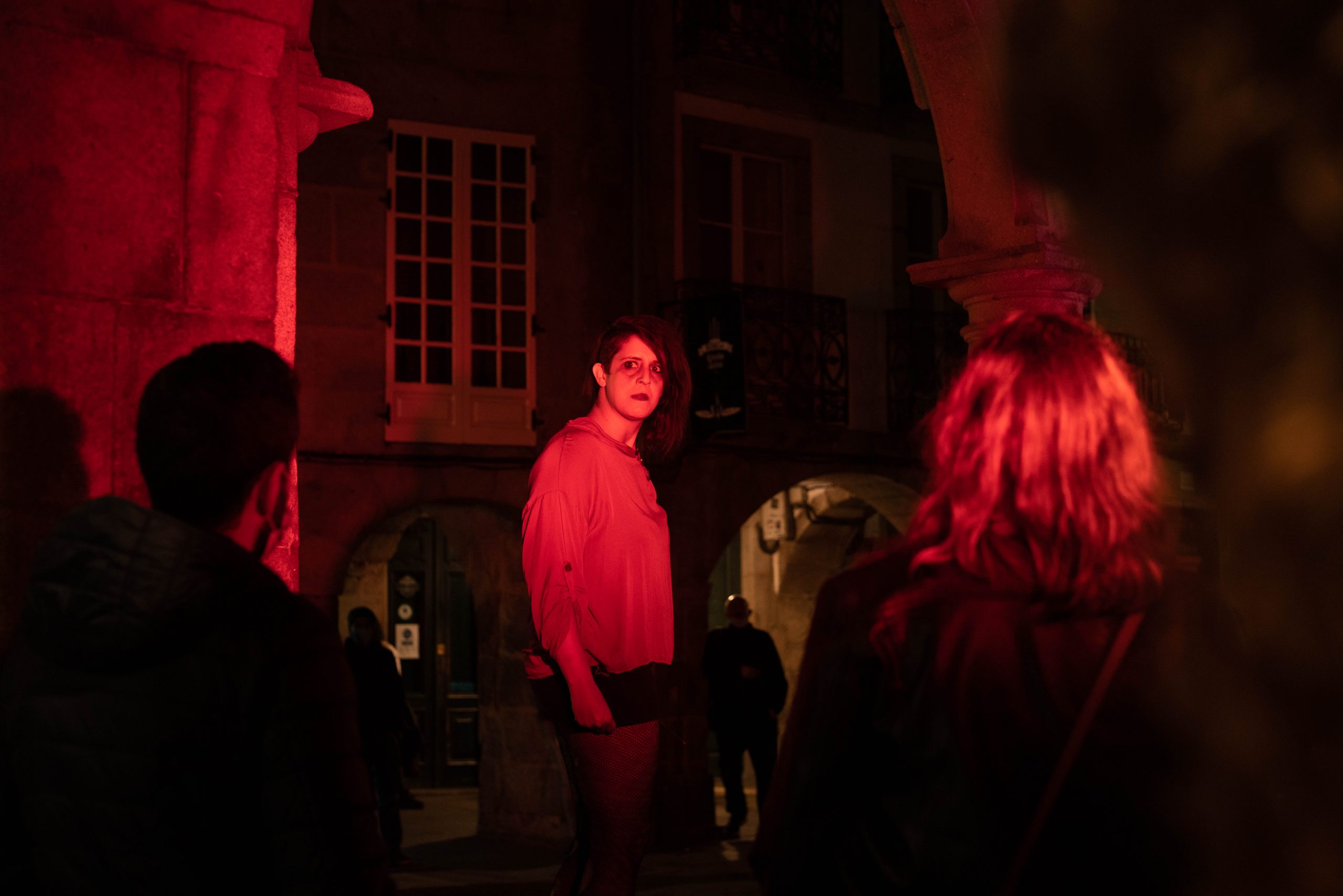 Periodista, actriz y cómica. Gala es polifacética e incansable. Aunque está acostumbrada a trabajar en solitario, esta vez cuenta con un equipo que le está dando todo el soporte que necesita, “trabajar con personas que admiras es la hostia”, comenta. A su lado, dirigiendo la obra, se encuentra el creador cultural Antón Coucheiro (Cou), director y actor de largo recorrido en el sector escénico gallego. Gala y Cou son socios (juntos fundaron el laboratorio y espacio creativo Espontánea) y, sobre todo, amigos. Gracias a Cou está encontrado cosas nuevas en su texto, “me ayuda tener un visión externa como la suya”, algo que le da la oportunidad de acercarse al personaje desde sitios que antes le parecían impensables. “Me está enseñando a quitarle peso a Medea, a aprender a reírme un poco del personaje”. Además de Cou, tras la creación del espacio sonoro encontramos al productor y compositor musical Javier Lemus. “Ha sido el primero con el que empecé a colaborar y enseguida supo captar la esencia de lo que estaba buscando… está siendo muy bonito trabajar con él”. Por último, la artista multidisciplinar Beatriz Rubio se encarga del espacio lumínico de la pieza, “ella es muy creativa, la admiro mucho y me encanta lo que está creando conmigo, aumentando mi corporalidad mediante un juego de luces y sombras”.