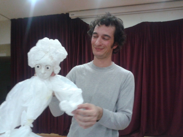 Pero… ¿cuál es la receta para ver una señora del siglo XVIII en una bolsa de supermercado? “Todos los objetos provocan una nueva sensación a partir de la investigación misma”, afirma Roberto, “a raíz de la forma, se trabaja con espejos para tener la referencia directa con el público, luego se construye el títere en relación al mapa expresivo del personaje”. En los títeres corporales, lo más importante es la respiración y el ritmo, trasladados al muñeco. El resultado final es la imitación de la expresión de vida.